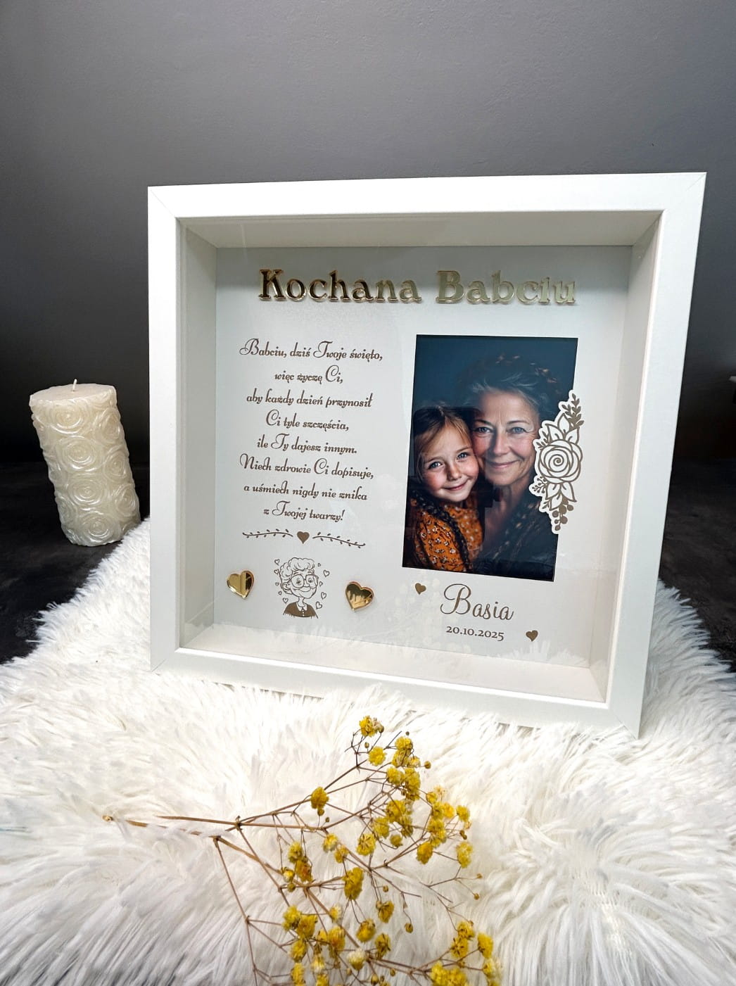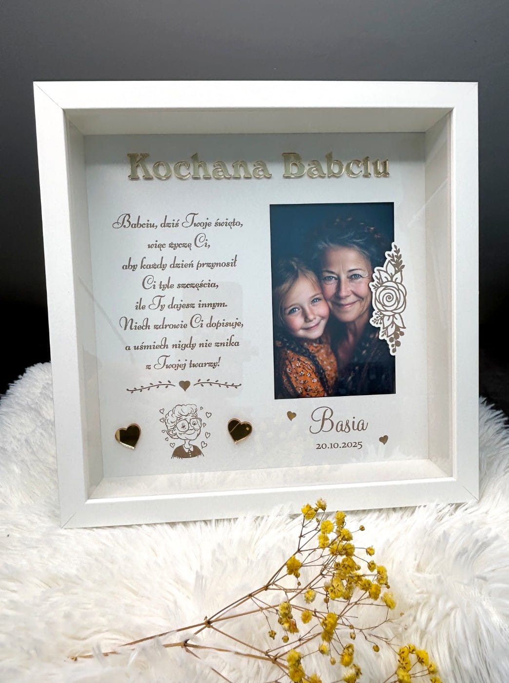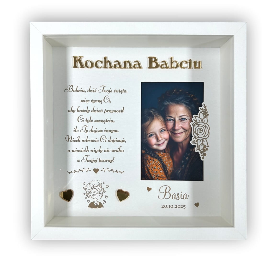 Nie czekaj! Podaruj Babci coś, co na zawsze pozostanie w jej sercu – wybierz naszą białą ramkę głęboką na Dzień Babci lub z okazji jej urodzin. To wyjątkowy upominek od wnuków, który zachowa wspomnienia na lata!