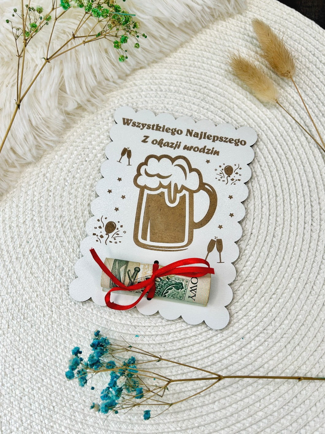 Drewniana Kartka na Pieniądze Prezent na Urodziny dla Niego Piwo Śmieszny Bon