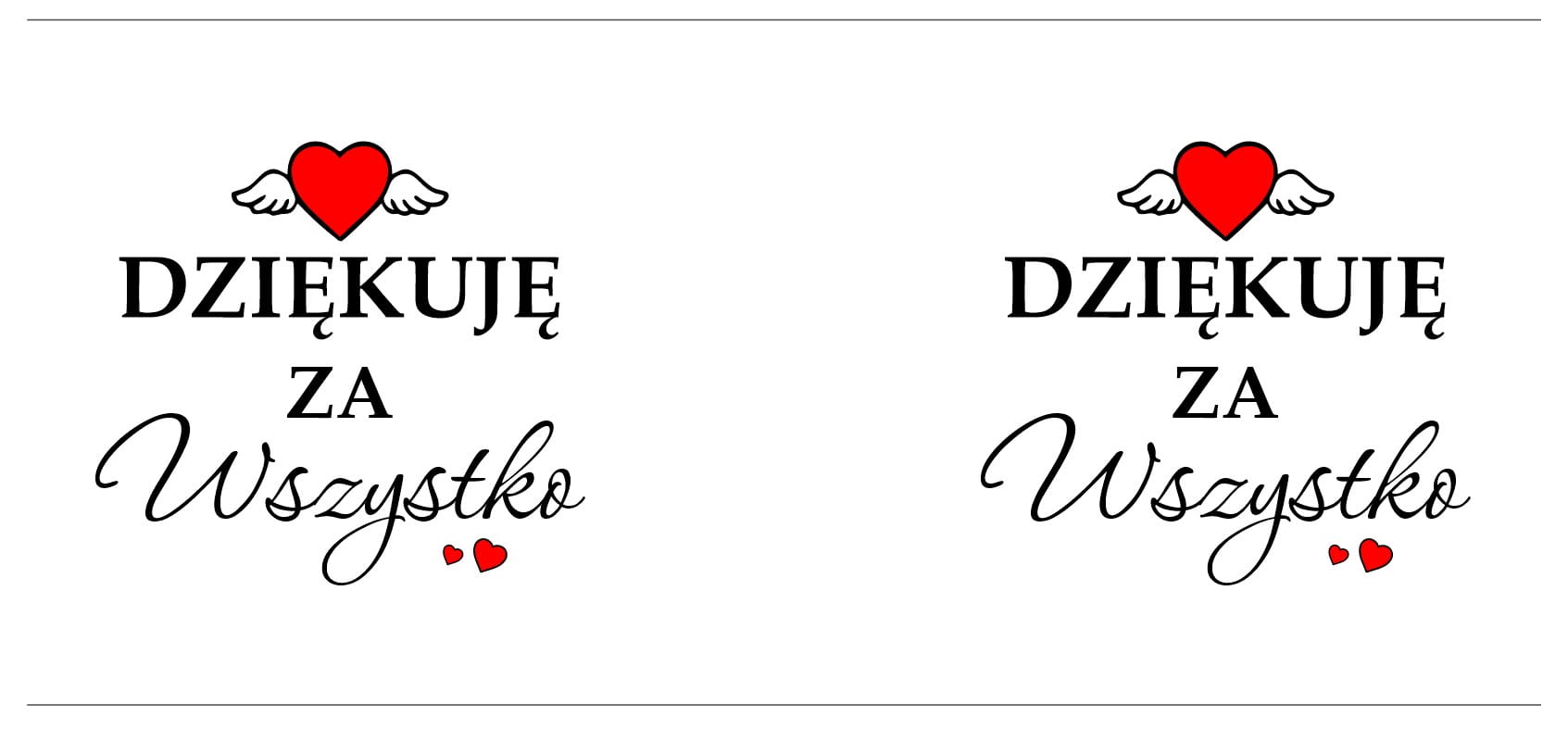 Na froncie znajduje się starannie wykonany napis „Dziękuję za wszystko”, dopełniony grafiką czerwonego serca ze skrzydłami oraz subtelnymi akcentami w postaci małych serduszek. To upominek, który mówi więcej niż tysiąc słów.