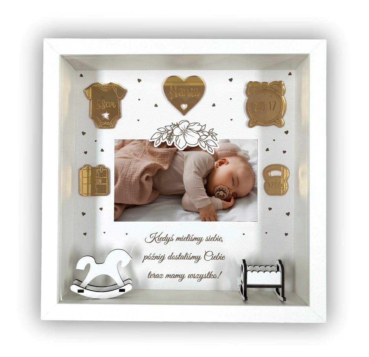 Głęboka Biała Ramka 3D – Metryczka Narodzin Dziecka