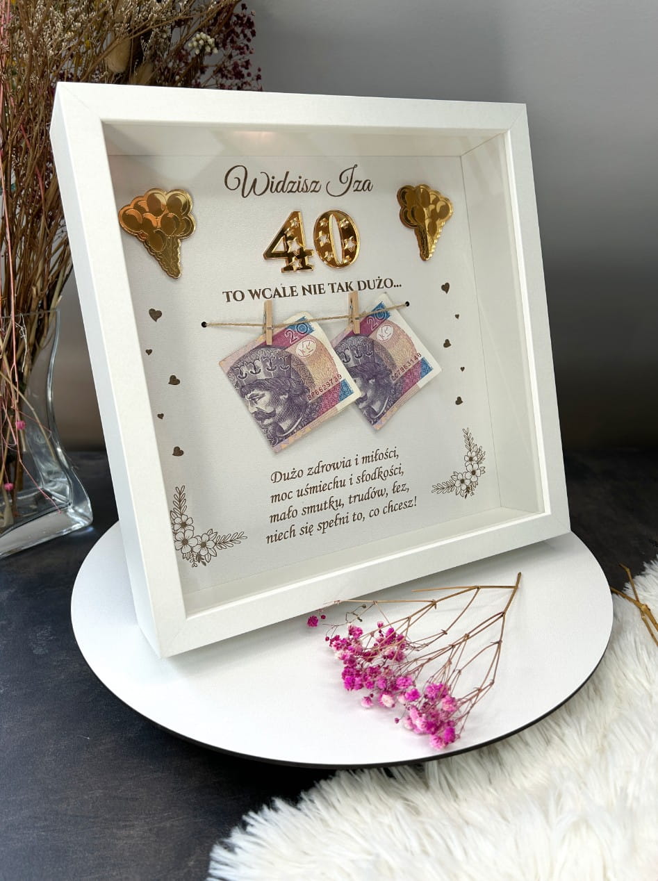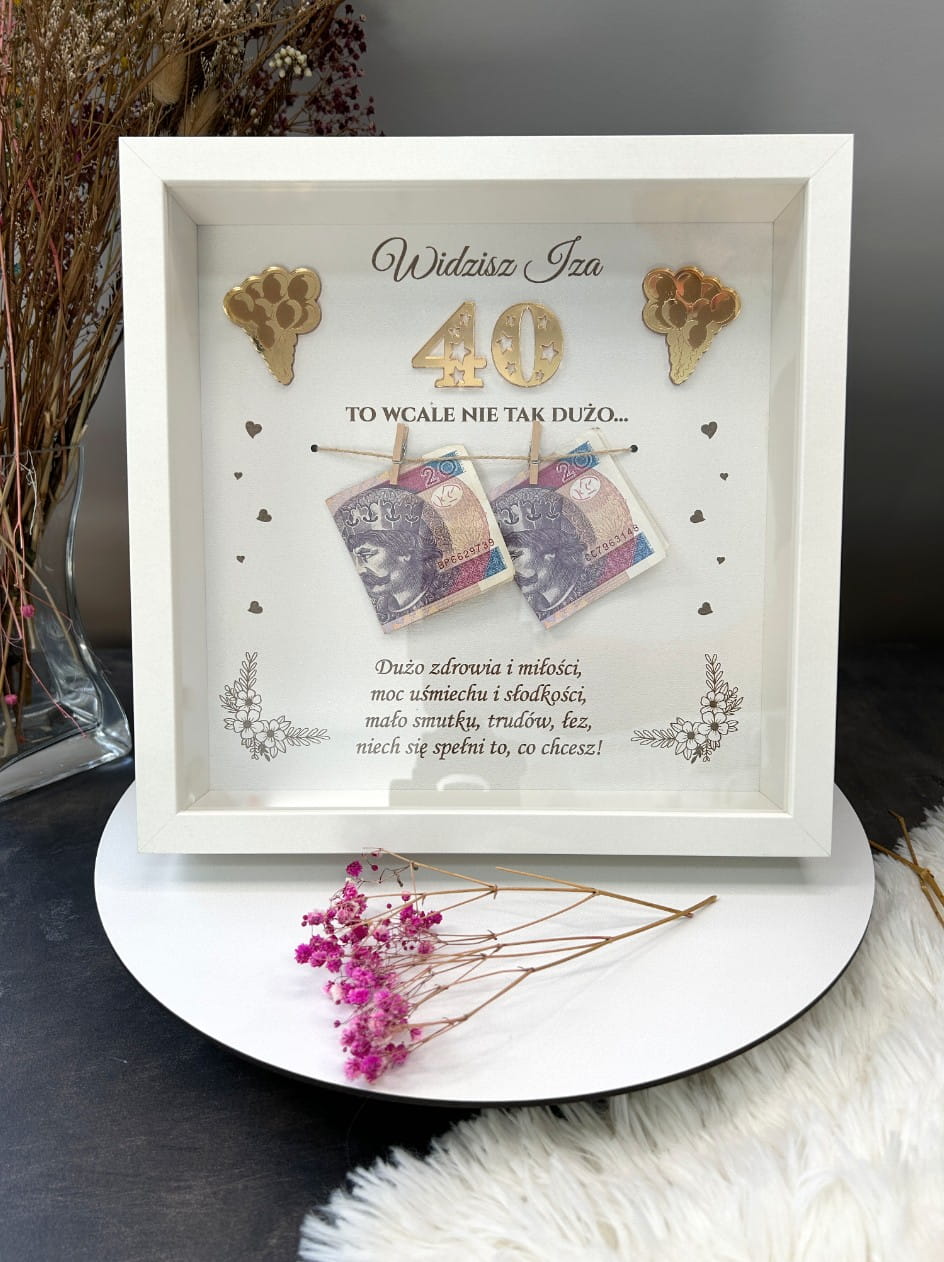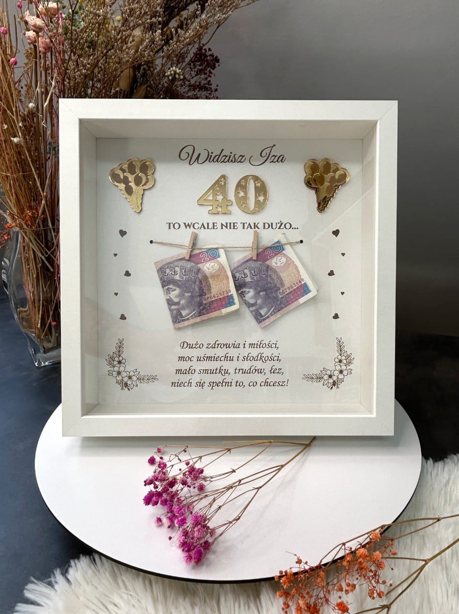 Świętuj 40. urodziny w wyjątkowy sposób dzięki naszej Głębokiej Białej Ramce 3D, która nie tylko zachwyca estetyką, ale także sprawia, że ten jubileusz staje się niezapomnianym wydarzeniem!