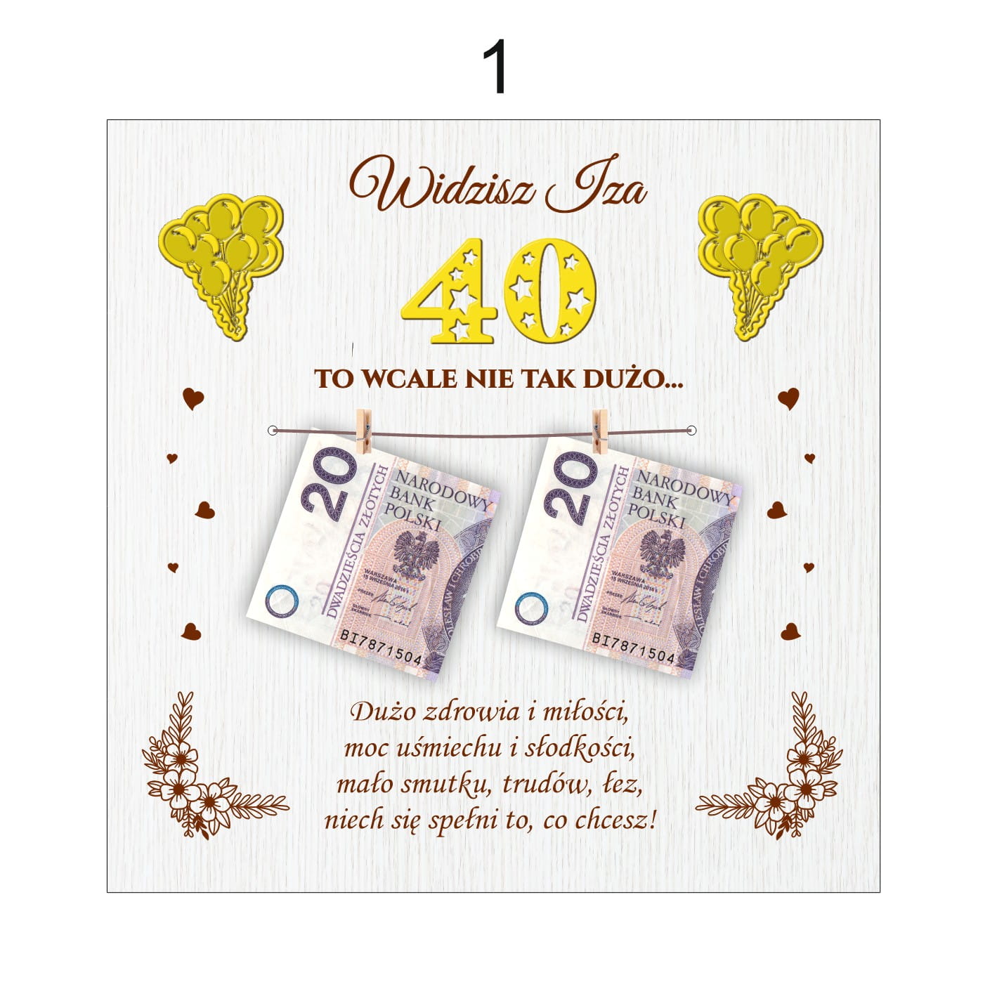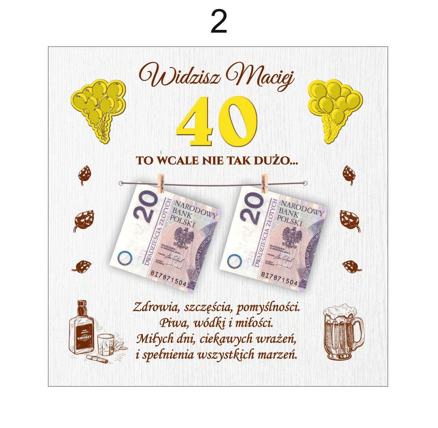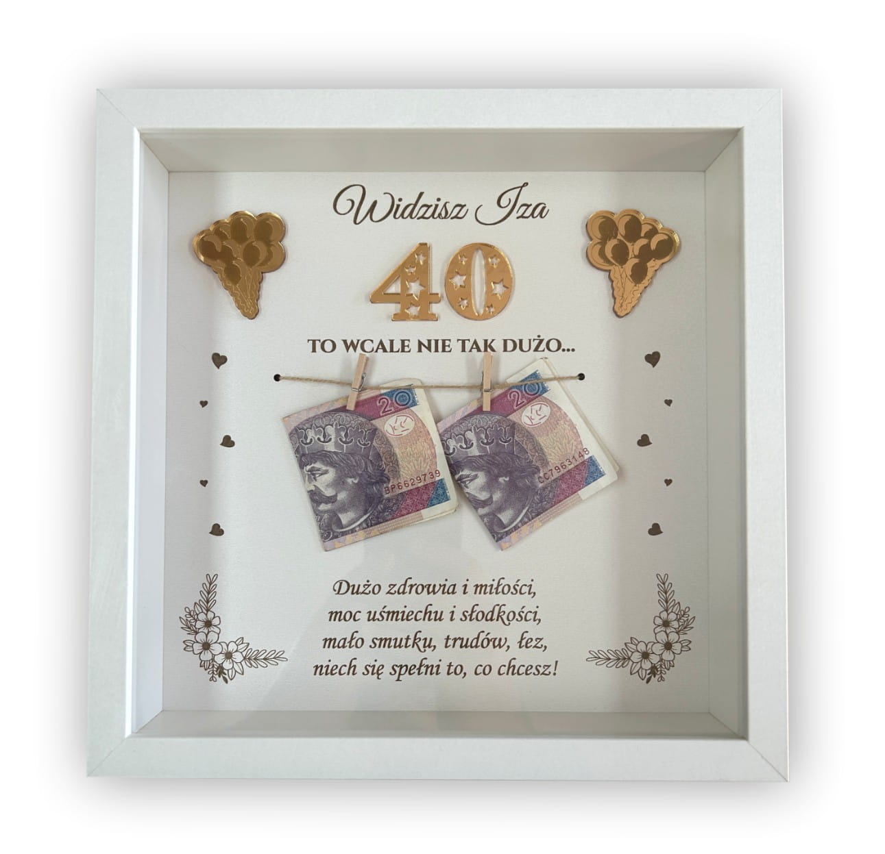 Nasza ramka została zaprojektowana z myślą o tej szczególnej okazji dla dziewczyny i chłopaka. Na jej centralnym miejscu znajduje się efektowna cyfra "40" wykonana ze złotej plexi, która przyciąga wzrok i nadaje całości eleganckiego charakteru. Nad napisem „Widzisz, 40 to wcale nie tak dużo” skrywa się przesłanie pełne radości i optymizmu, które idealnie oddaje duch tego ważnego momentu.