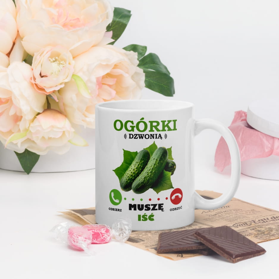 Kubek Ogórki Dzwonią Muszę Iść – Śmieszny Prezent dla Ogrodnika