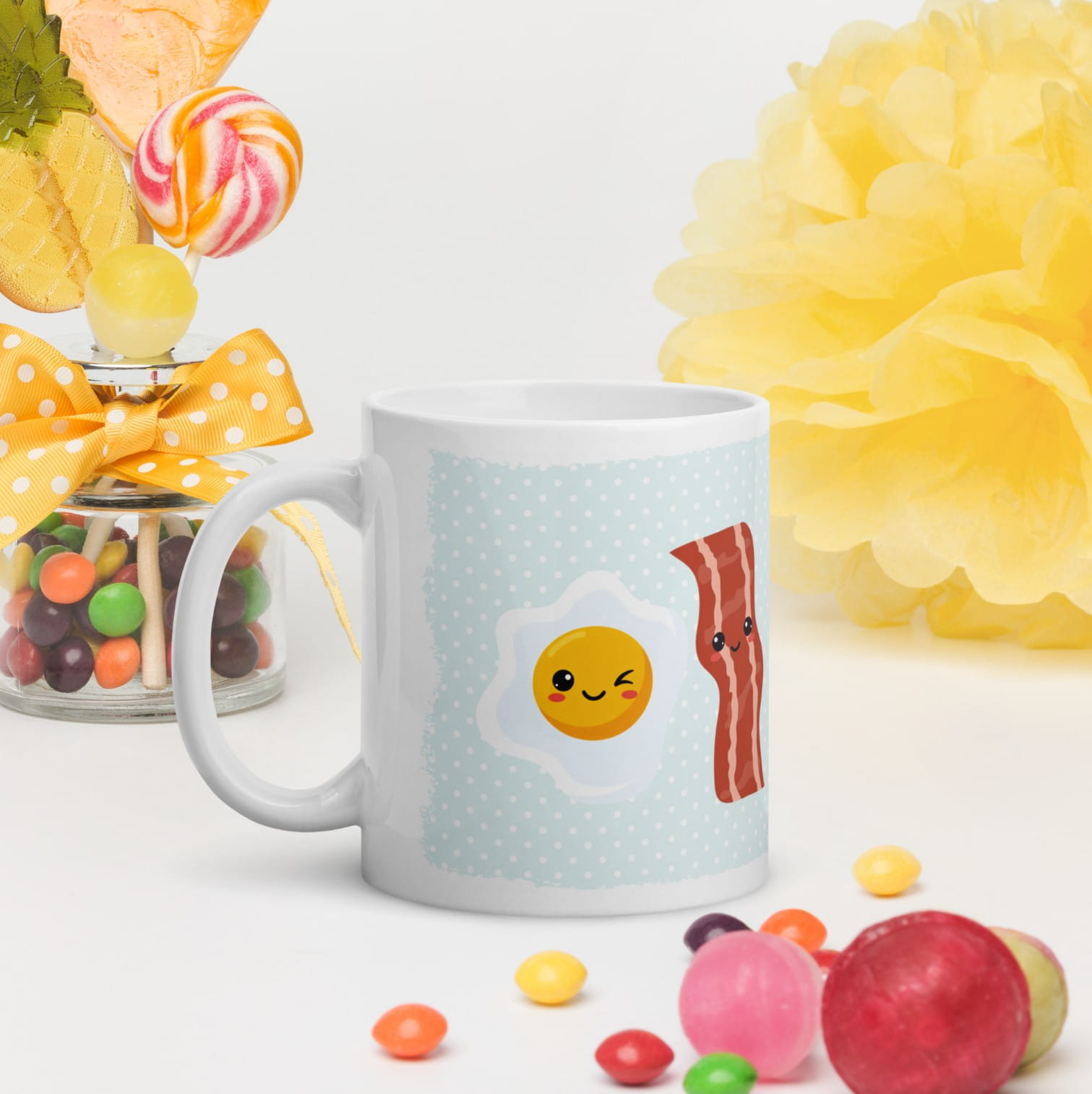Szukasz idealnego prezentu dla osoby, bez której Twój dzień nie smakuje tak samo? Nasz kubek z uroczą grafiką jajka i bekonu to symbol nierozłącznej przyjaźni. Bo przecież niektóre rzeczy po prostu lepiej smakują (i wyglądają) w duecie!