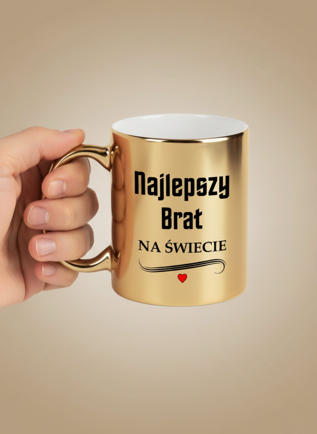 Szukasz wyjątkowego prezentu, który wywoła szczery uśmiech na twarzy Twojego brata? Ten elegancki kubek w odcieniu błyszczącego złota to idealny wybór, który łączy w sobie elegancję z osobistym przekazem.