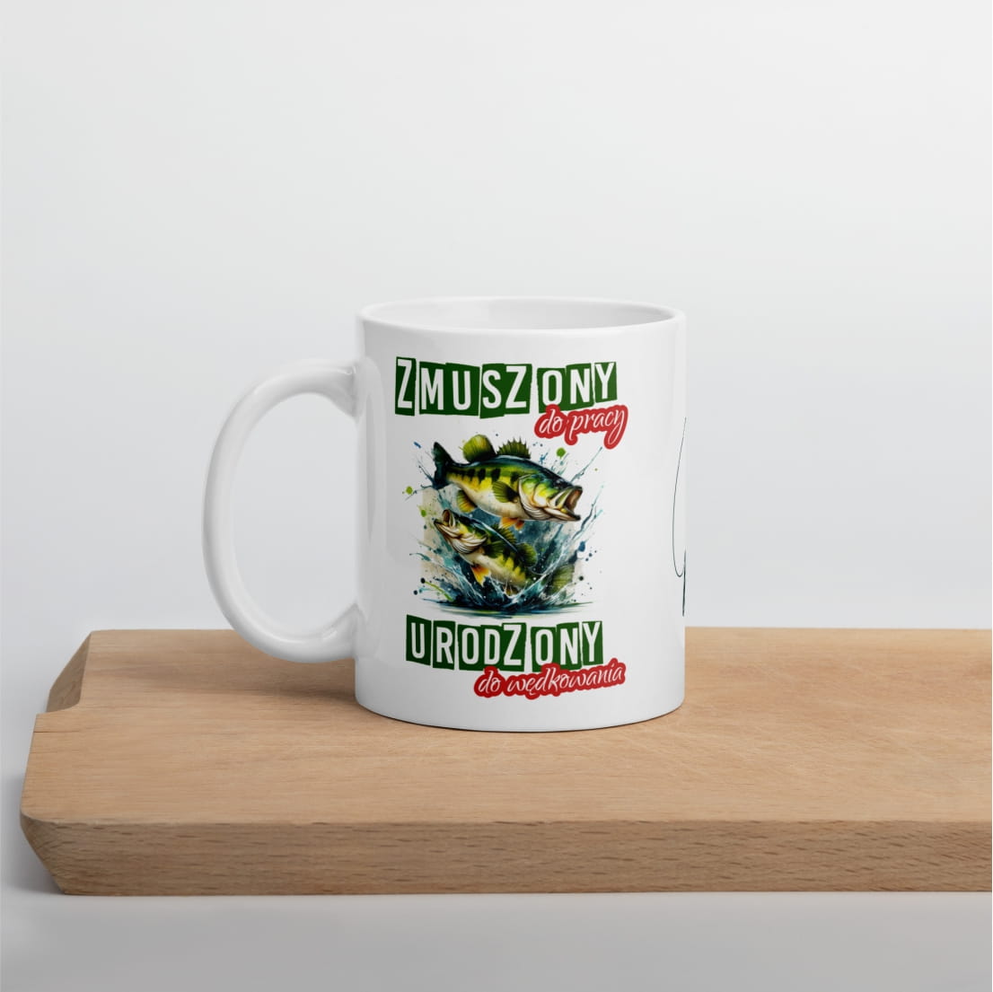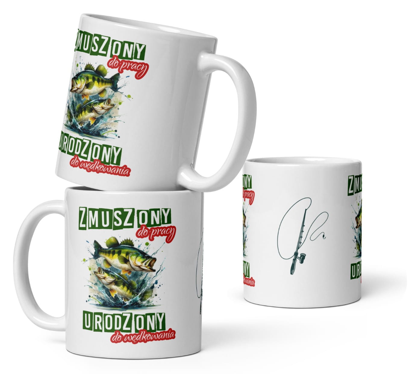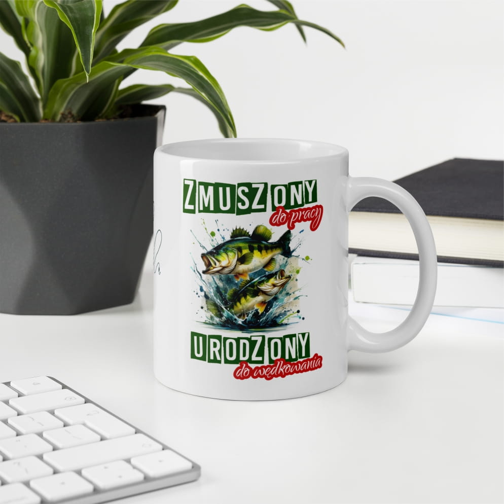 Kubek dla Wędkarza z zabawnym tekstem Zmuszony do pracy, urodzony do wędkowania