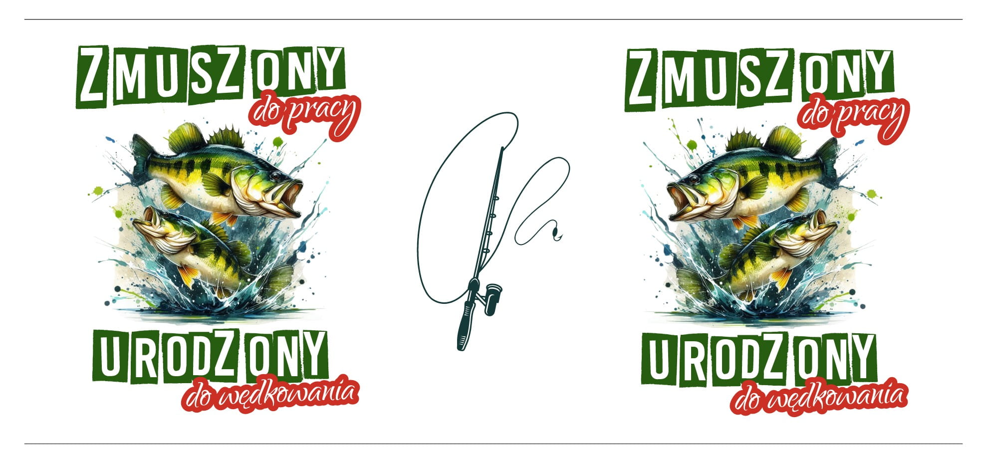 Zabawny i trafny przekaz: Hasło "Zmuszony do pracy, Urodzony do wędkowania" wywoła uśmiech na twarzy każdego wędkarza i doskonale podkreśli jego priorytety.