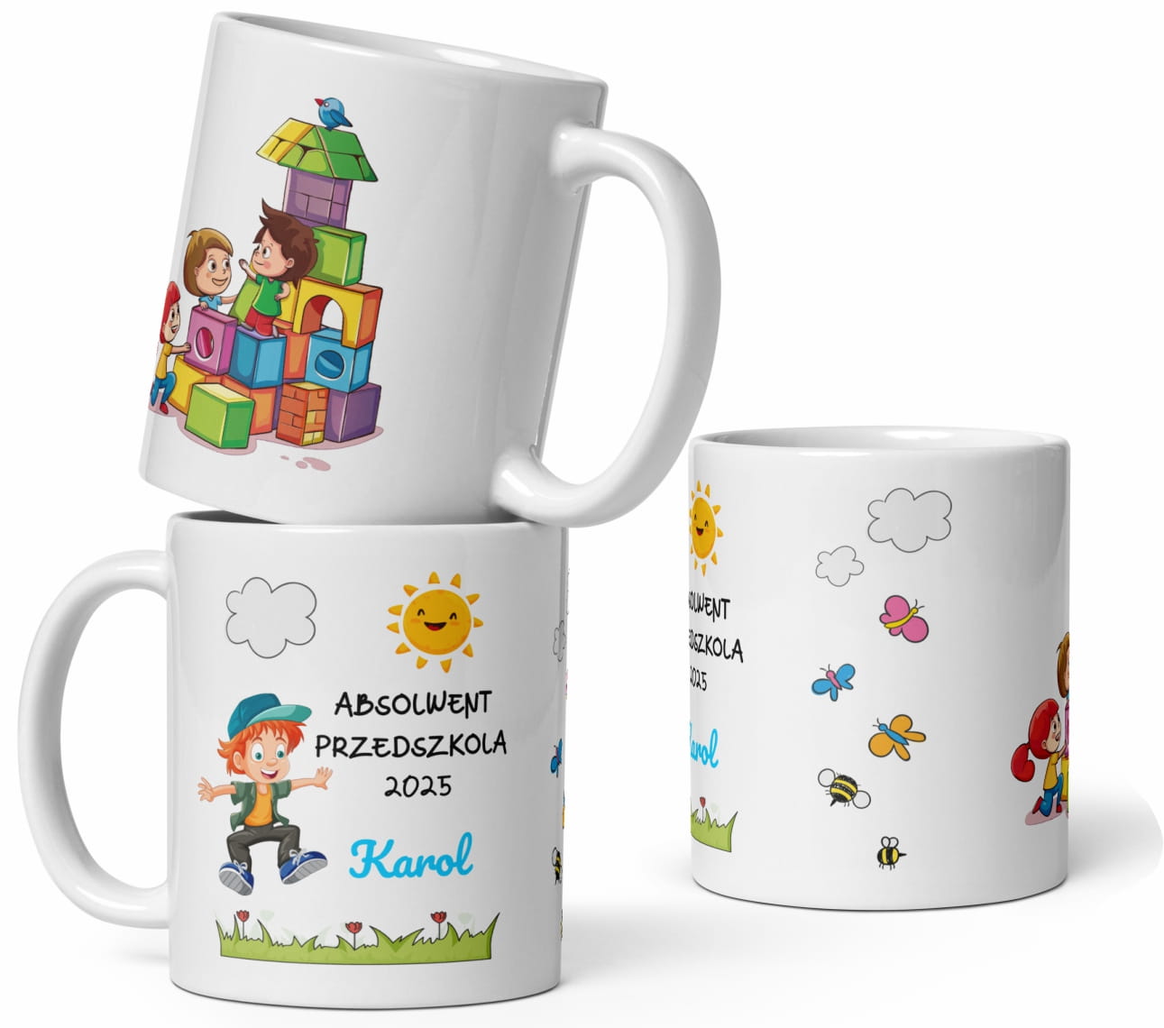 Kubek z imieniem Pasowanie na przedszkolaka, oraz kubek Absolwent przedszkola