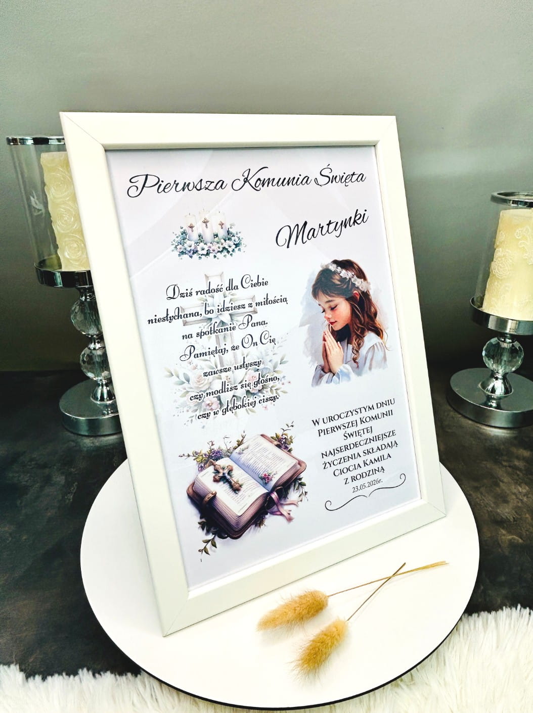 Pamiątka Pierwszej Komunii Świętej Ramka Personalizowana Prezent dla Dziewczynki