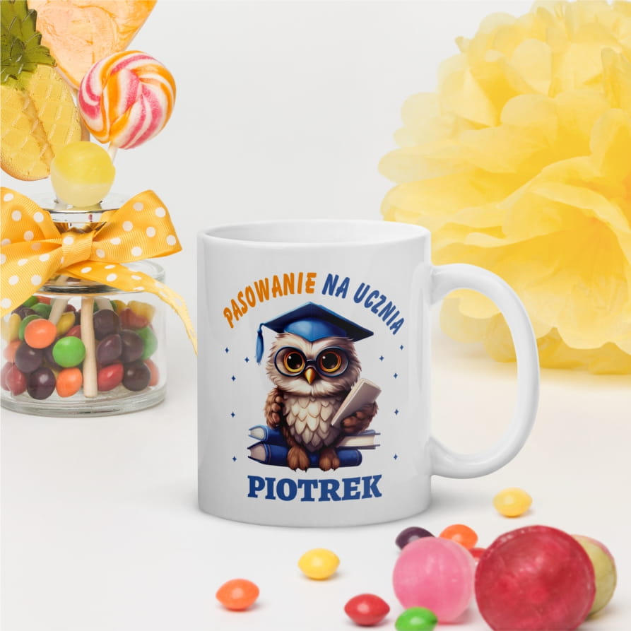 Personalizowany Kubek dla Pierwszoklasisty – Pasowanie na Ucznia – Sowa w Birecie