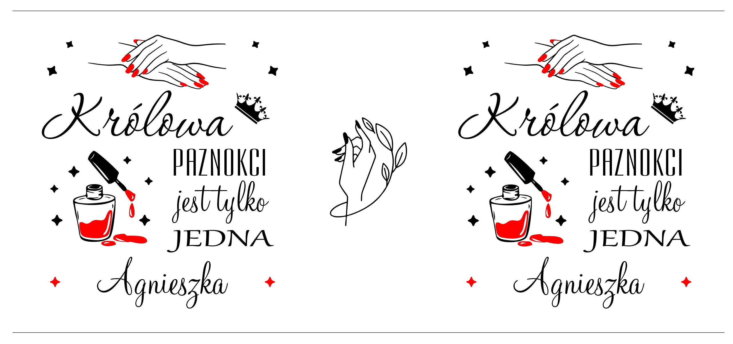 Wysoka jakość: Trwały nadruk odporny na ścieranie. Grafika przedstawiająca dłonie z czerwonymi paznokciami, buteleczkę lakieru i koronę idealnie oddaje pasję do zawodu.
