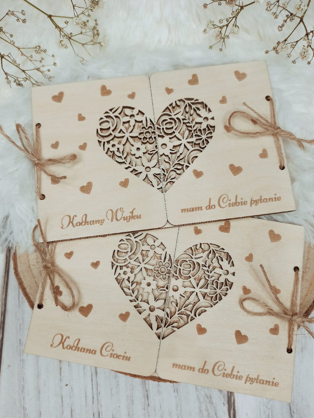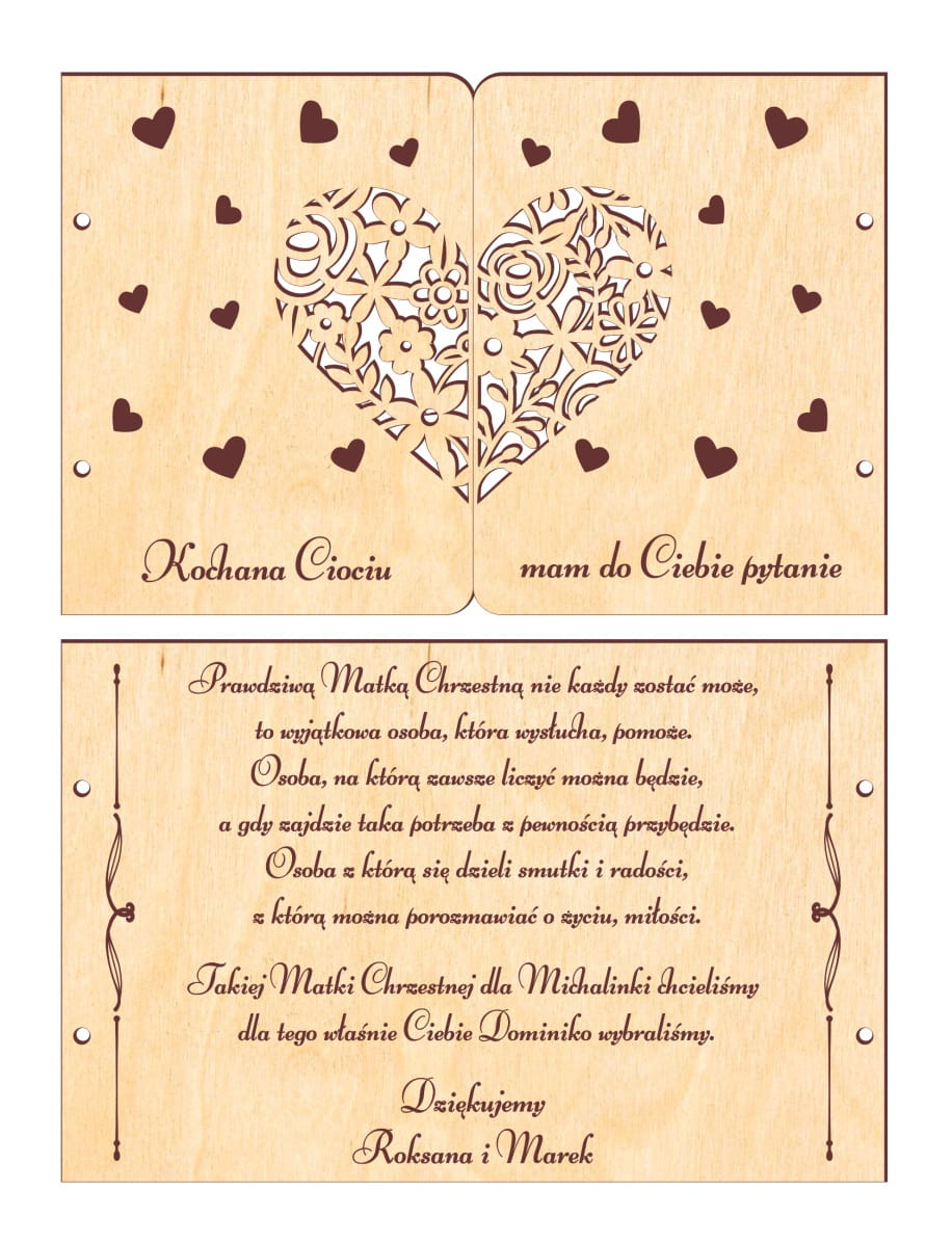 Prośba dla Chrzestnych. Spersonalizowana ażurowa kartka ze sklejki zestaw