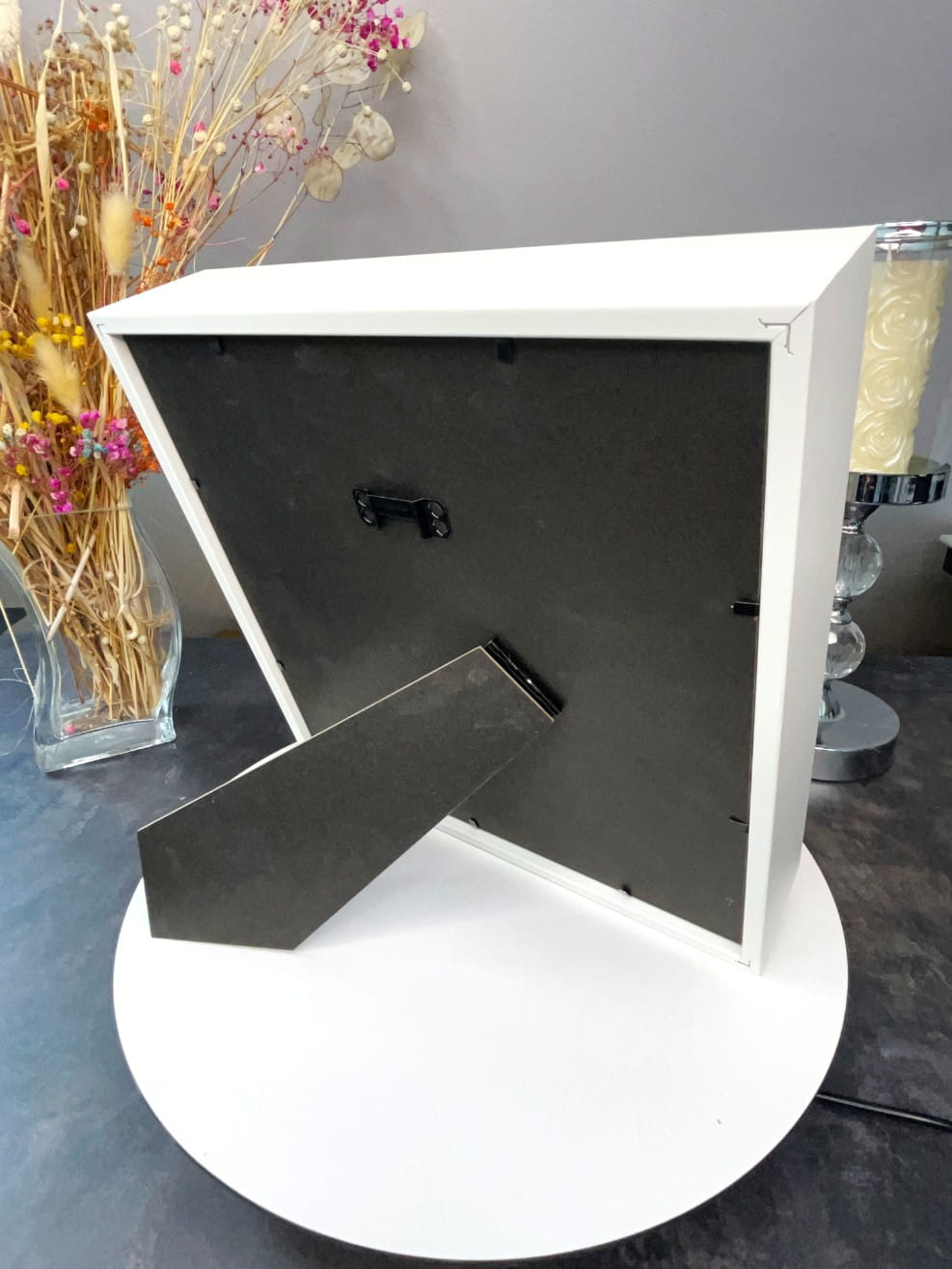 Montaż: Ramka posiada solidny uchwyt do zawieszenia na ścianie oraz szeroki profil, dzięki któremu może stabilnie stać na komodzie czy biurku.