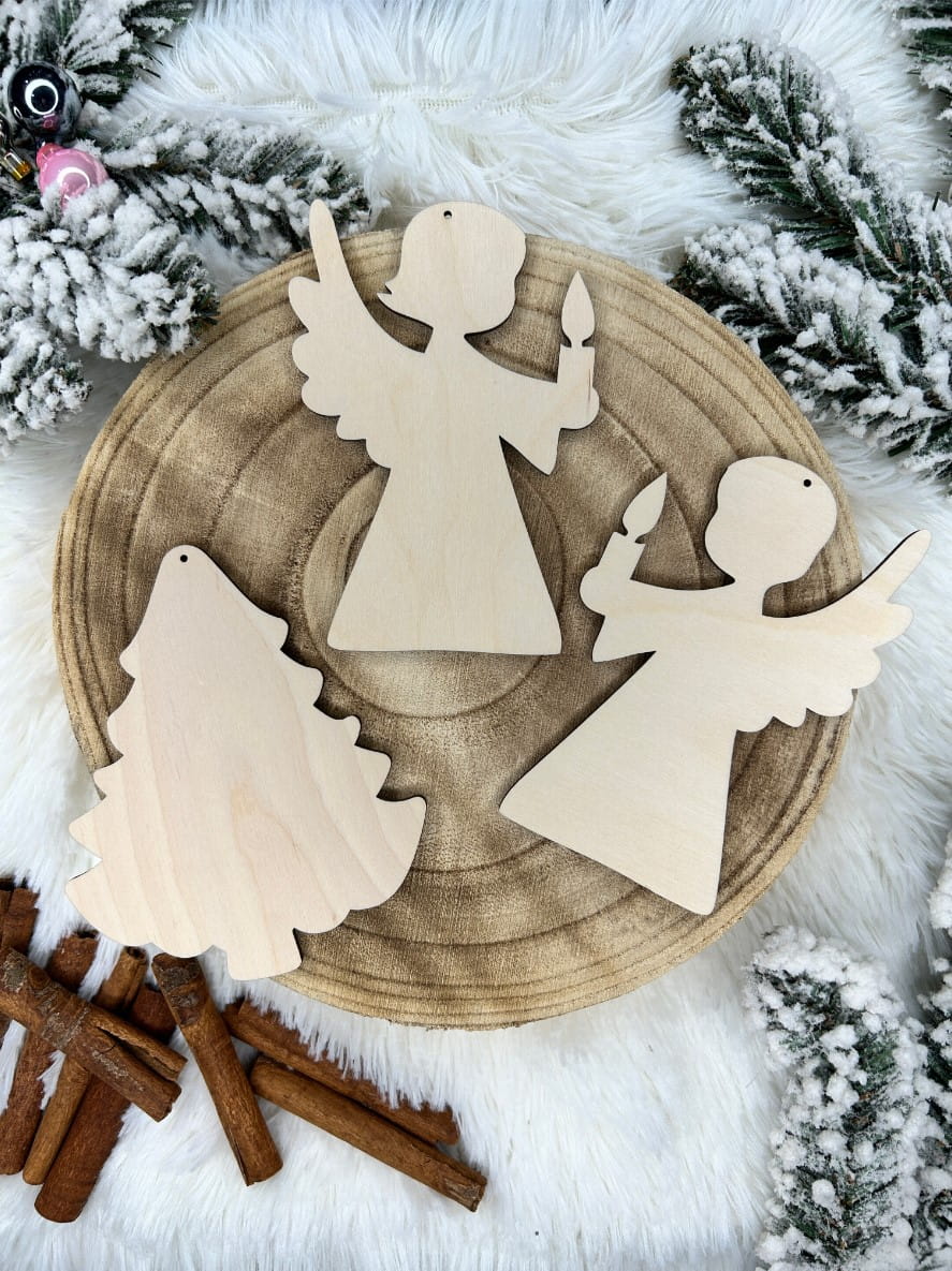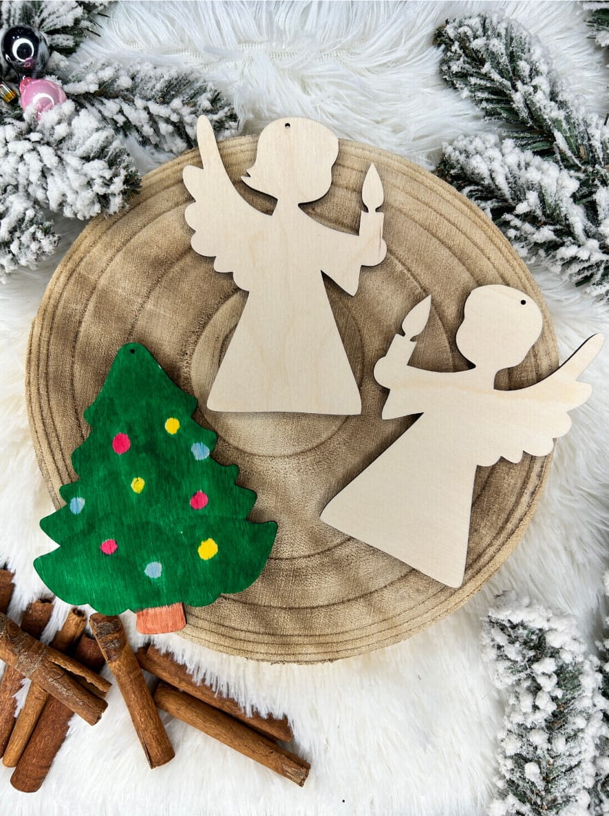 Świąteczne bombki dla dzieci do samodzielnego ozdabiania i dekorowania ze sklejki