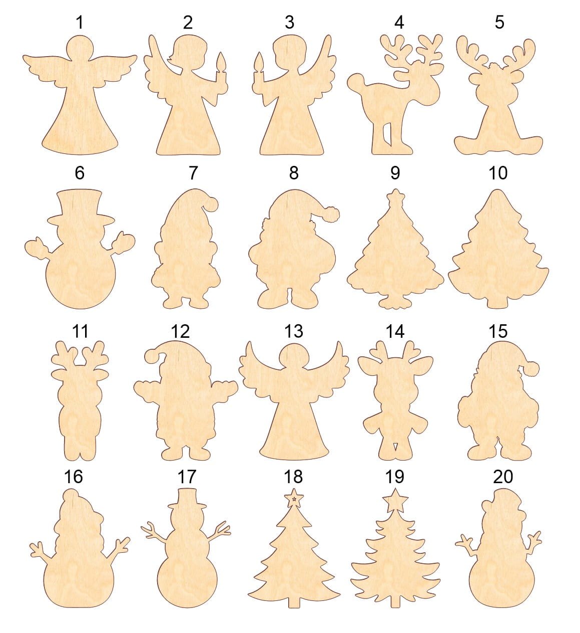 Te urocze świąteczne ozdoby wykonane są z trwałej i ekologicznej sklejki, co czyni je bezpiecznymi dla dzieci. Bombki dostępne w kilku wzorach Mikołaj, Choinka, Rudolf, Bałwan, Aniołek oraz choinka.