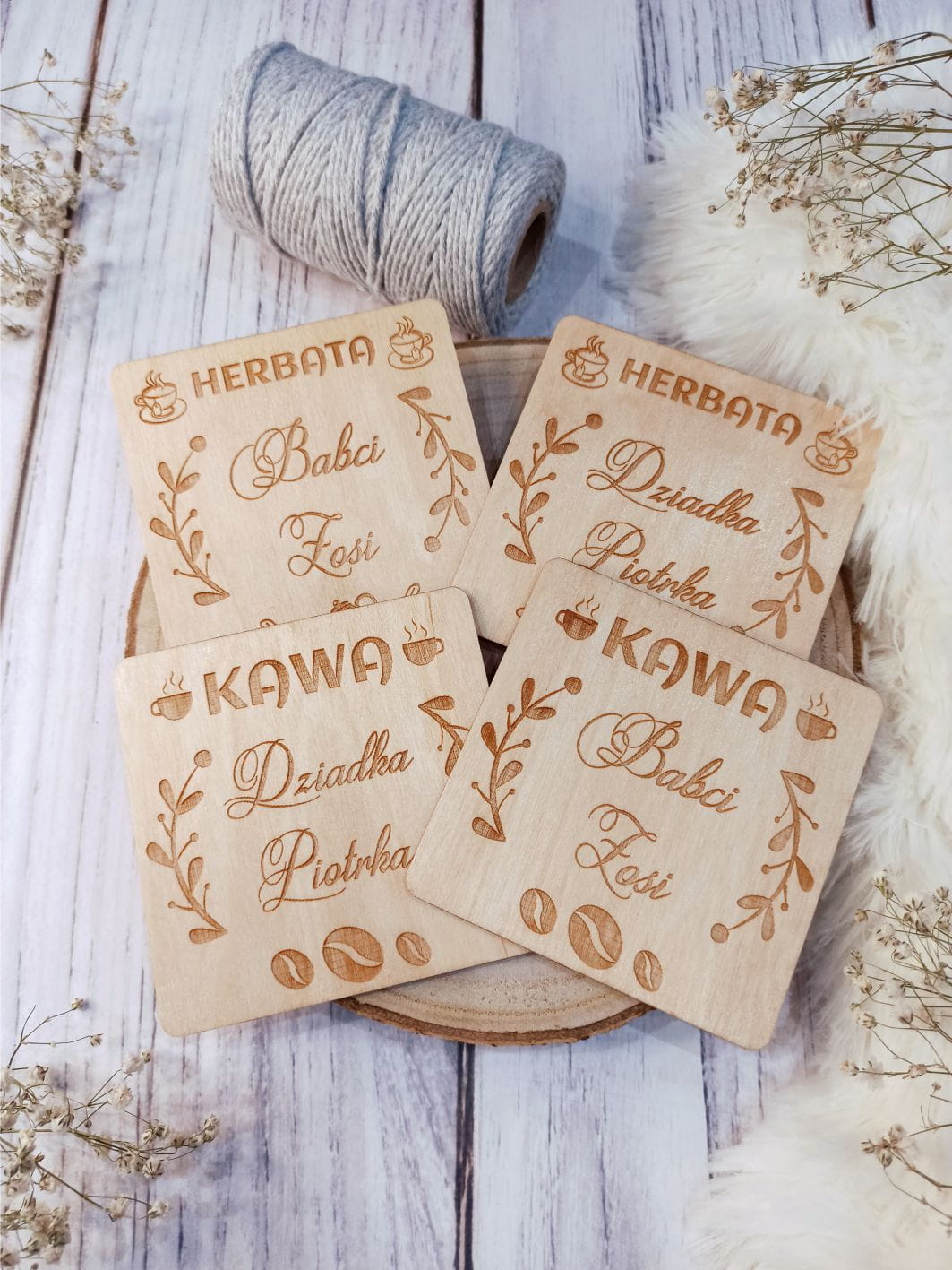 - 2 wzory personalizowanych podkładek pod kubek (Kawa lub Herbata)