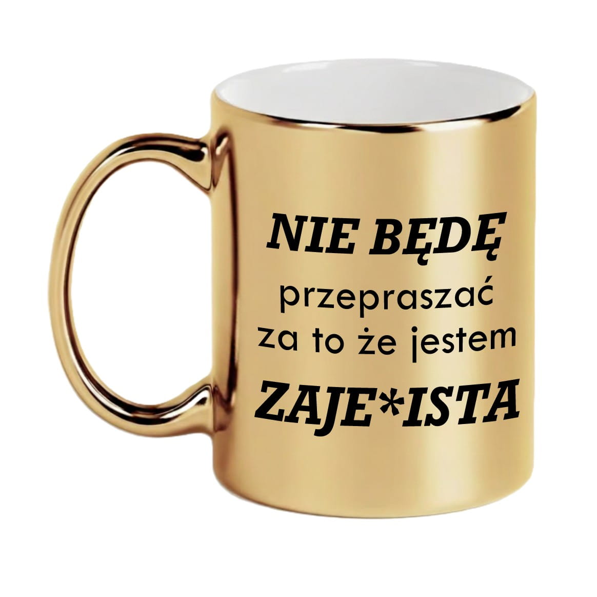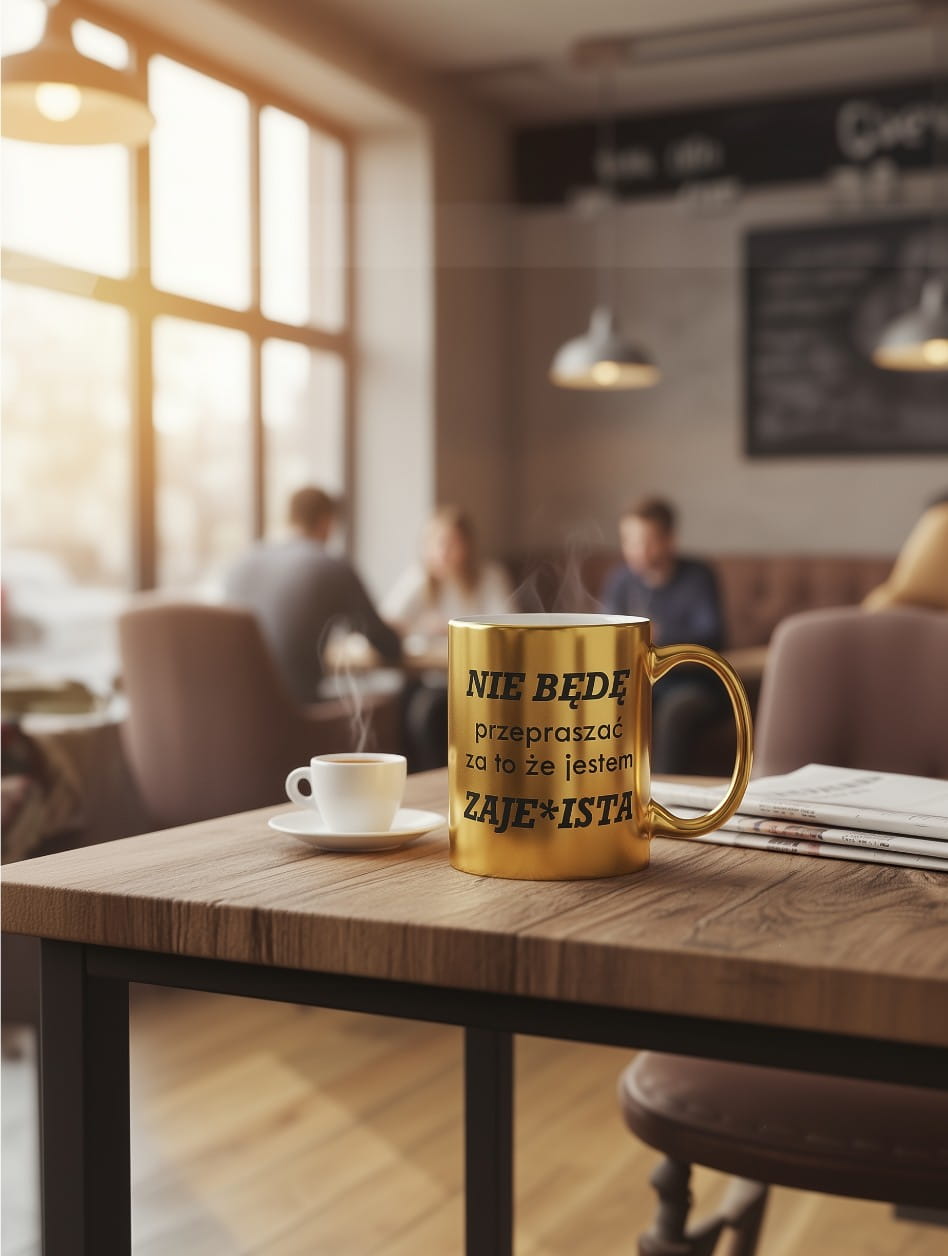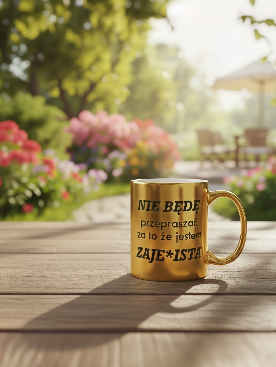 Złoty Kubek Lustrzany z Napisem dla Niej – Prezent "Nie będę przepraszać..." – Elegancki i Odważny