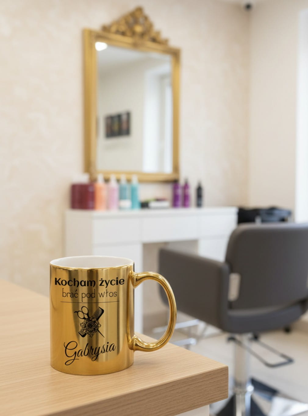 Szukasz wyjątkowego prezentu dla mistrzyni nożyczek? Ten luksusowy, złoty kubek z pewnością wywoła uśmiech na twarzy każdej fryzjerki i stylistki fryzur!
