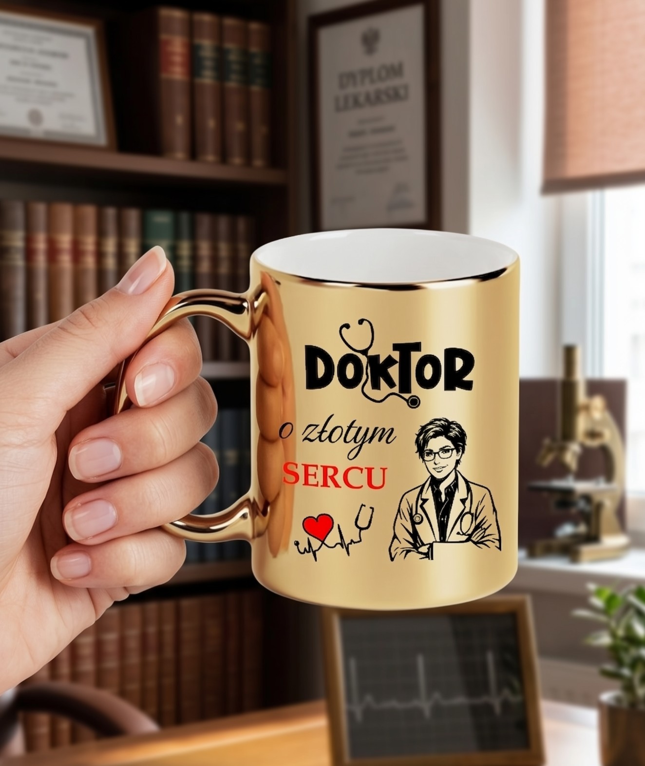 Złoty Kubek Podziękowanie dla Lekarza Doktor o Złotym Sercu Prezent Medyk