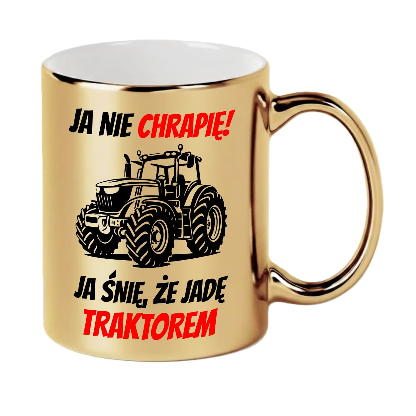 Złoty Kubek Prezent dla Rolnika Traktor Nie Chrapię Śmieszny Napis Dzień Taty