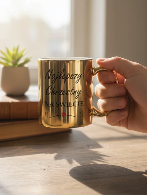 To nie jest zwykły kubek – to elegancki upominek, który sprawi, że każda poranna kawa lub herbata stanie się chwilą przyjemności. Wykonany z dbałością o każdy detal, wyróżnia się lśniącym, złotym wykończeniem, które przyciąga wzrok i dodaje produktowi klasy. Czy to z okazji Chrztu Świętego, urodzin, imienin, czy po prostu bez okazji – ten kubek to podarunek, który pozostanie z Twoim Chrzestnym na lata.
